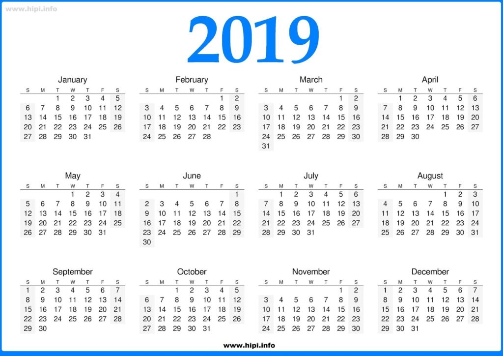 Free 2019 Printable Calendar Wall – Desktop Calendars Ready-to-Print