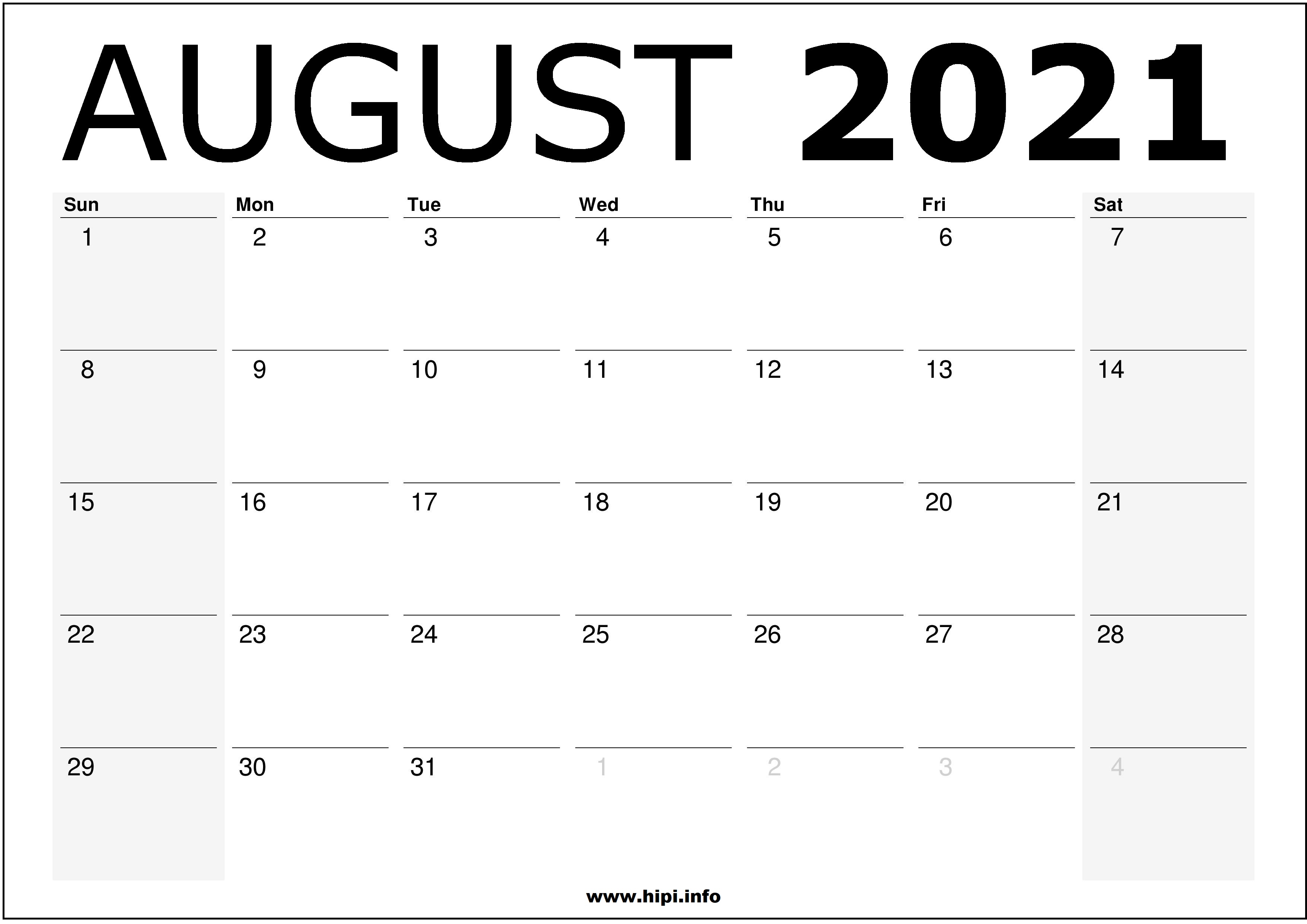 Free August 2021 Printable Calendar Wall