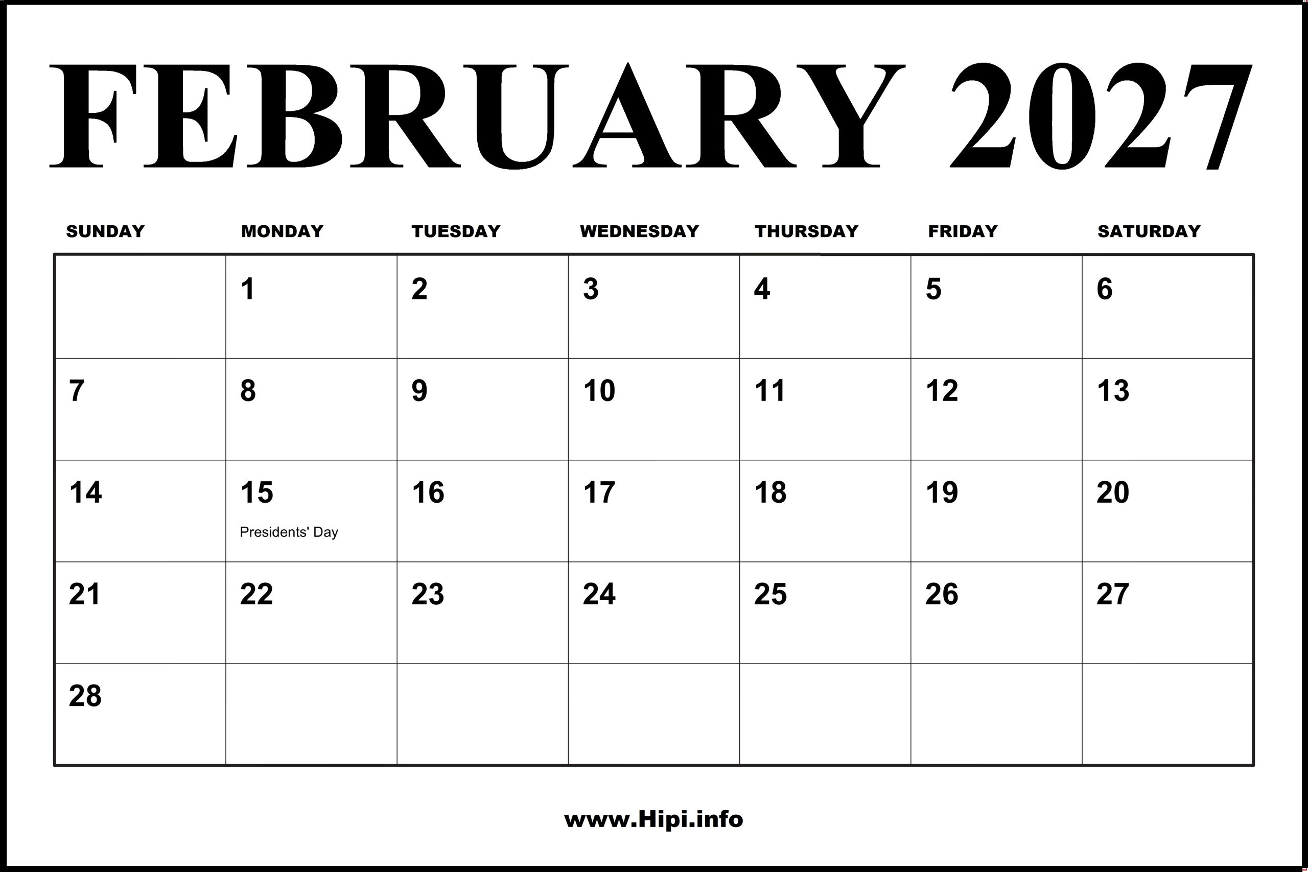 February 2027 Monthly Calendar Printable with US federal holidays. 2027 Printable February Calendar with US holidays – Sunday start. February 15, 2027, Monday – Presidents’ Day, Washington’s Birthday. Free Printable February 2027 Monthly Calendar. 2027 Monthly February Calendar landscape. Dimensions: 5400 x 3600 PX, A4 Paper Size. Calendar US Federal Holidays 2027 highlighted, Printable, One … Read more