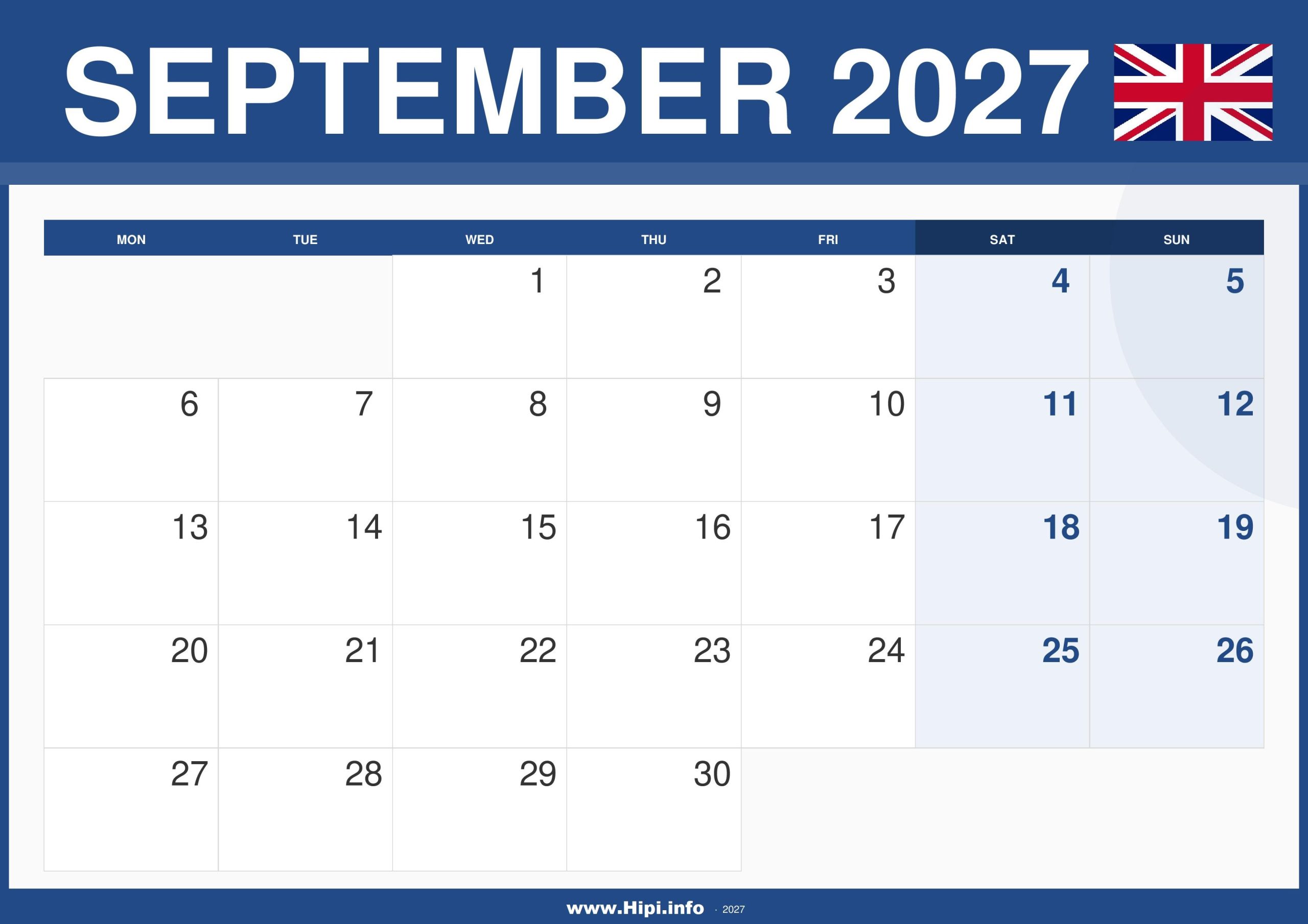 2027 UK September Calendar with Bank Holidays Horizontal 2027 UK Printable Calendar September. Free A4 Size, Monthly Pages, Monday Week Start. Landscape Monthly United Kingdom Calendar Download Free. Free printable September 2027 UK Calendar, holidays included. Download free 2027 UK calendar printable. Large date numbers, Swiss Grid, A4 format, clean layout, and easy-to-print monthly pages. … Read more